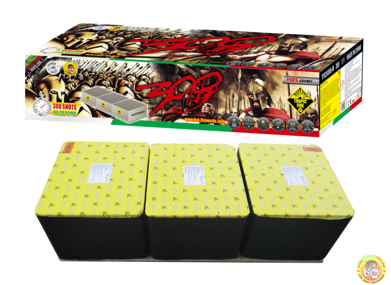 300 е комбинация от пиробатерии, които предварително са свързани, така че без пиротехник, със запалването само на един фитил, да стартирате красива заря.